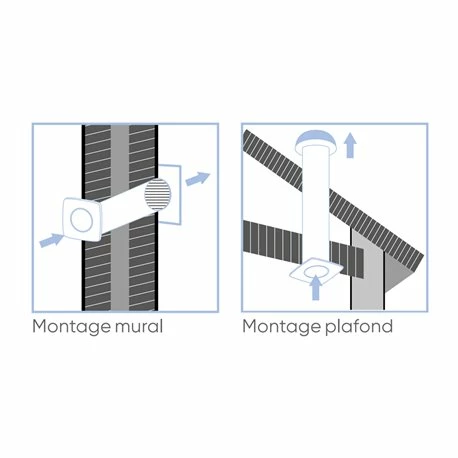 Un extracteur doit se poser sur la partie haute d’une zone humide : au choix le mur ou le plafond.
