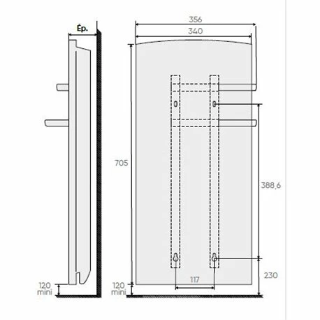 Dans le but de pouvoir appréhender sa localisation et son installation, voici les dimensions de l’appareil Kéa 841524 Atlantic. Il mesure 120 mm d’épaisseur, 705 mm de hauteur et 340 mm de largeur.