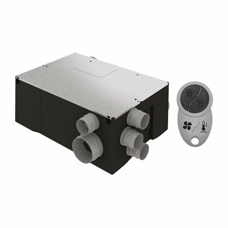 Le nombre de pièces de votre lieu de vie va impliquer une certaine quantité de piquages, ce qui signifie les évacutations au départ du plénum, afin d’en relier un maximum ; le modèle VMC double flux Primocosy HR BP SRI Commande télécommande radio en possède de 8.