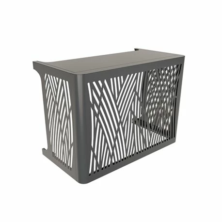 Le cache de climatisation BROUSSE (taille M) gris anthracite Outsteel par Poujoulat est un cache intégral destiné à habiller la PAC ou la climatisation extérieure. Elle camoufle de manière élégante et protège des chocs et intempéries. En plus de son design inspiré du végétal, elle offre une circulation d’air parfaite pour un fonctionnement optimal des appareils. Elle s’adapte à toutes les configurations (mur, mur/sol, sol) et à la majorité des PAC et climatisations. Destiné à une installlation murale, le modèle Base BROUSSE est livré sans face de dessous, sans face arrière, ni pied. Dimensions (Lxlxh) : 1025x521x750 mm. Référence : 53002100/7016. Code EAN : 3417064268913. Fabrication Française.