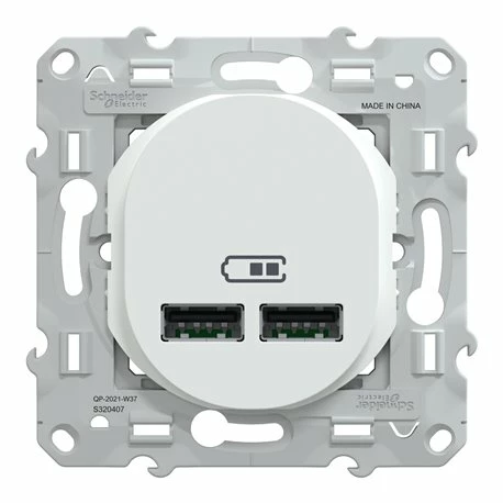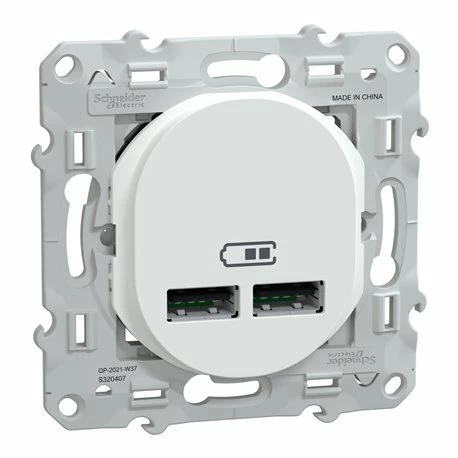 Double chargeur USB A+A – 10,5W – 5V – 2,1 A max Ovalis S320407 Blanc Schneider Electric. Propose 2 connecteurs USB Type A de 10,5W. Elle permet à la fois d’alimenter et de recharger deux appareils électriques simultanément (1×2,1 A ou 2×1 A) : smartphones, montres connectées… . Ce produit est garanti Green Premium, l’écolabel qui s’engage à des performances durables et respectueuses de l’environnement. Plaque de finition vendue séparément. Code EAN: 3606482162853. L’ensemble des spécifications du produit se trouve dans l’onglet notices ci-dessous. La référence est également certifiée Cradle to Cradle® valable au niveau international, Schneider Electric doit respecter les exigences en matière de gestion de l’eau et du carbone, d’énergies renouvelables, de composition et de réutilisation des matériaux ainsi que de l’équité sociale.
