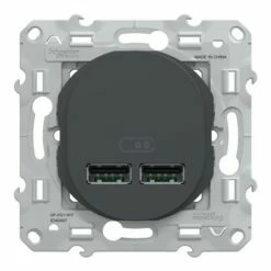 Double Chargeur USB A+A 10,5W 5V 2,1 A Max Ovalis S340407 Anthracite