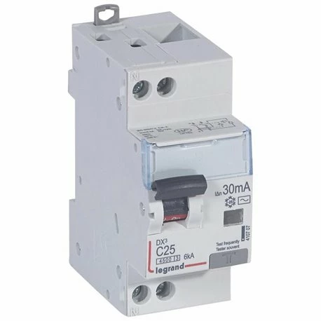 Legrand Disjoncteur Différentiel DX3 4500 – Vis-vis U+N 230V 25A TypeAC 30mA Courbe C 2M