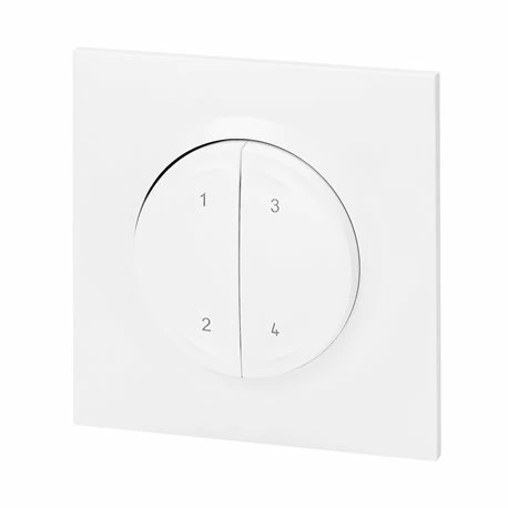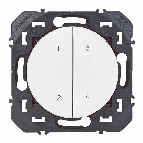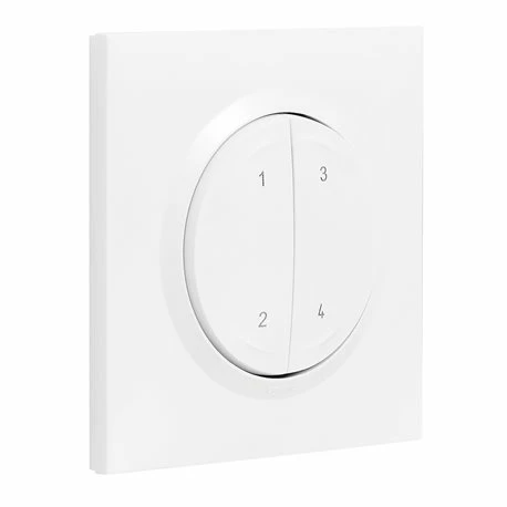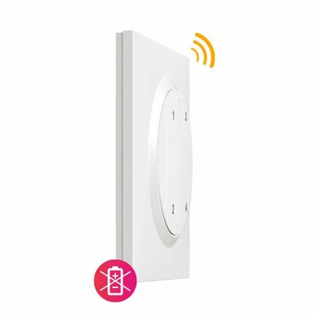 Commande sans fils, sans pile Self-E Dooxie with Netatmo 4 scénarios coloris blanc, ref 600091L de Legrand. Elle permet sans tirer de fils, de commander des scènes de vie associant volets roulants, prises connectées et lumières. Technologie radio 2.4GHz avec protocole Zigbee 3.0. 4 boutons pour lancer 4 scénarios personnalisables depuis l’App Home + Control. Code EAN: 3414972017008