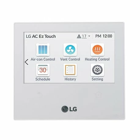 Télécommande AC EZ TOUCH PACEZA000.ENCXLEU Blanche Filaire LG. Jusqu’à 64 unités intérieures connectables, compatible avec les unités intérieures, Multi V, ERV, ERV DX, THERMA V et kit hydraulique, contrôle individuel et par groupe, vérification des erreurs, mode esclave, programmation, accès à distance par internet, contrôle des consommations, changement de modes, limite de température, historique, Code EAN: 8806087767285
