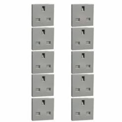 Lot De 10 Prises Standard Britannique 15A 2P+T Unica NU304530 Aluminium 2 Modules Mécanisme Seul