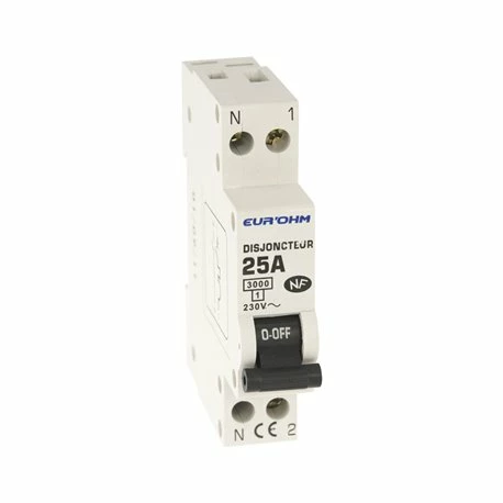 Le lot de 12 Disjoncteurs Courbe C 1 module 25A 20025 Eur’ohm est de type 1P+N avec 1 module et un calibrage de 25A. Ce disjoncteur possède une tension nominale de 230V AC et une tension assignée de tenue aux chocs Uimp de 4000 V. Il convient pour des usages courants. Il a une tenue des bornes au couple de serrage de 1,8 Nm. Il est doté d’un verrou bi-stable et d’un indicateur ON/OFF mécanique et marquage de la manette pour une double visualisation de l’état des contacts. Sa classe de limitation d’énergie est de type 1. Robuste, il résiste à l’eau et aux chocs. Code EAN : 3663752002332