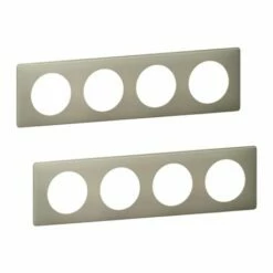 Lot de 2 plaques 4 postes gris poudré de la marque Legrand. Les dimensions (lxHxP) sont : 303x82x8,5 mm. Cette plaque s’installe rapidement en se clipsant sur le mécanisme compatible. Il est aussi possible d’installer ce produit horizontalement ou verticalement. Référence : 066714. Code EAN : 3414970448422.