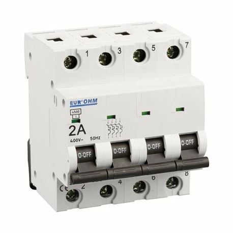 Le Lot de 3 Disjoncteurs Tétrapolaire 4 modules 2A 20161 Eur’ohm est de type tétrapolaire courbe C avec 4 module et un calibrage de 2A. Ce disjoncteur possède une tension nominale de 400V AC et une tension assignée de tenue aux chocs Uimp de 4000 V. Il convient pour des usages courants. Il a une tenue des bornes au couple de serrage de 1,8 Nm. Il est doté d’un verrou bi-stable et d’un indicateur ON/OFF mécanique et marquage de la manette pour une double visualisation de l’état des contacts. Sa classe de limitation d’énergie est de type 3. Robuste, il résiste à l’eau et aux chocs. Code EAN : 3663752003698