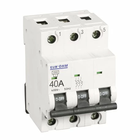 Le Lot de 4 Disjoncteurs Tripolaire 3 modules 40A 20149 Eur’ohm est de type tripolaire courbe C avec 3 module et un calibrage de 40A. Ce disjoncteur possède une tension nominale de 400V AC et une tension assignée de tenue aux chocs Uimp de 4000 V. Il convient pour des usages courants. Il a une tenue des bornes au couple de serrage de 1,8 Nm. Il est doté d’un verrou bi-stable et d’un indicateur ON/OFF mécanique et marquage de la manette pour une double visualisation de l’état des contacts. Sa classe de limitation d’énergie est de type 3. Robuste, il résiste à l’eau et aux chocs. Code EAN : 3663752003575