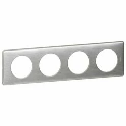 Plaque 4 postes Céliane aluminium de la marque Legrand. Les dimensions (lxHxP) sont : 303x82x8,5 mm. Ce produit peut être installer à l’horizontale ou à la verticale. La plaque s’installe sur des supports de fixation à vis ou à griffes en se clipsant par cran. Référence : 068924. Code EAN : 3245060689247.
