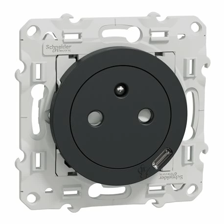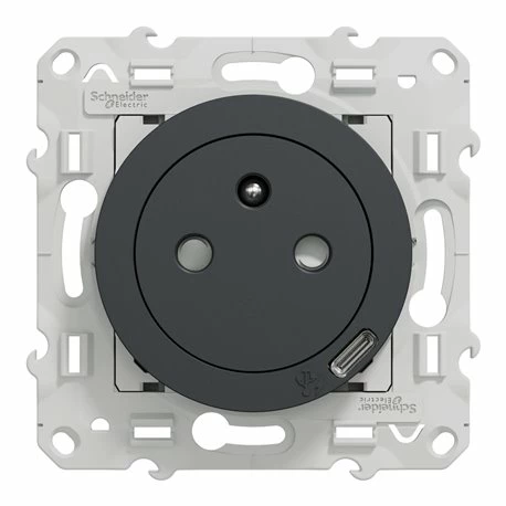 Prise De Courant Affleurante 2P+T Avec USB C Odace S540089 Anthracite
