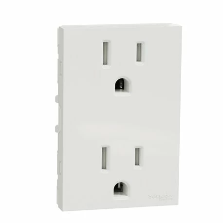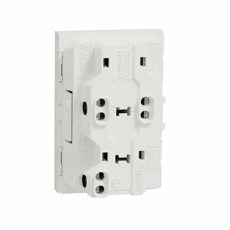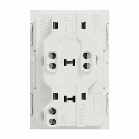 Prise Double Standard US 15A 2P+T Unica NU306018 Blanc 3 Modules Mécanisme Seul