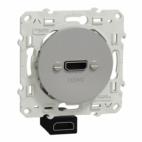Prise HDMI type A prise femelle/câble femelle à l’arrière Odace S530462 Aluminium Schneider Electric. Convient pour le milieu résidentiel, en rénovation ou en neuf.Plaque de finition en option, vendue séparément. La marque s’engage auprès de l’écolabel Green Premium, garantissant à fournir des produits durables et respecteux de l’environnement. Code EAN: 3606480708572. L’ensemble des spécifications du produit se trouve dans l’onglet notices ci-dessous. La référence est également certifiée Cradle to Cradle® valable au niveau international, Schneider Electric doit respecter les exigences en matière de gestion de l’eau et du carbone, d’énergies renouvelables, de composition et de réutilisation des matériaux ainsi que de l’équité sociale.