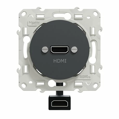 Prise HDMI type A prise femelle / câble femelle arrière Odace S540462 Anthracite Schneider Electric. Convient pour le milieu résidentiel, en rénovation ou en neuf.Plaque de finition en option, vendue séparément. La marque s’engage auprès de l’écolabel Green Premium, garantissant à fournir des produits durables et respecteux de l’environnement. Code EAN: 3606480708619. L’ensemble des spécifications du produit se trouve dans l’onglet notices ci-dessous. La référence est également certifiée Cradle to Cradle® valable au niveau international, Schneider Electric doit respecter les exigences en matière de gestion de l’eau et du carbone, d’énergies renouvelables, de composition et de réutilisation des matériaux ainsi que de l’équité sociale.