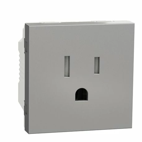 Prise Standard US 15A 2P+T Unica NU302830 Aluminium 2 Modules Mécanisme Seul