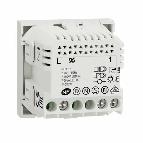 Schneider Electric Variateur Rotatif Wiser Unica NU351620W 2 Fils Zigbee Blanc Antimicrobien Mécanisme Seul